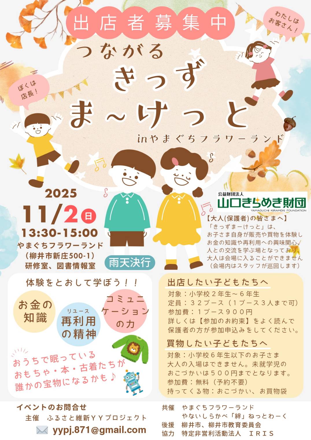きっずまーけっと in やまぐちフラワーランド イベント(2025/11/02開催)情報を掲載。