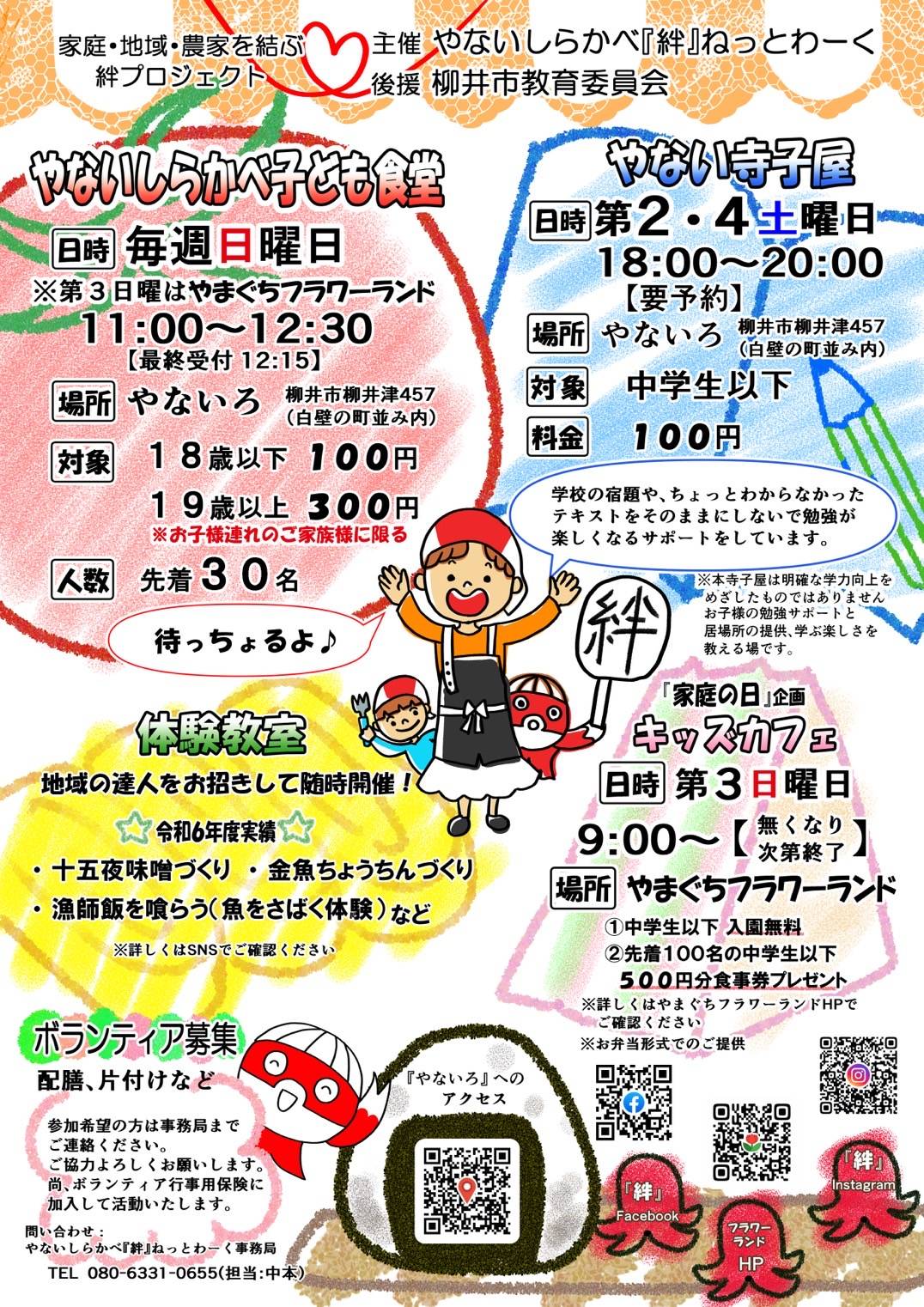やないしらかべ子ども食堂『絆』・やない寺子屋 in やないろ イベント情報を掲載。